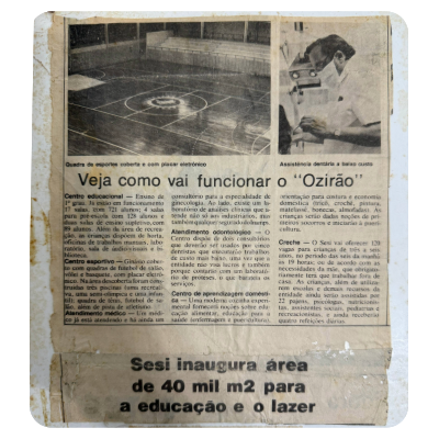 “Aqui era uma fazenda de búfalos e gado, pegava desde a Tamoios até o Campo dos Alemães. Depois foram loteando e aí cresceu muito porque o SESI veio pra cá. Essa avenida (Cidade Jardim) era de terra, tinha uma pista. Aí fizeram a outra, asfaltaram e melhorou bem”, relembra Jair de Oliveira Rocha, funcionário mais antigo do SESI São José dos Campos. Seu Jair, como é conhecido, guarda muitas lembranças e histórias desde a época em que começou a trabalhar na instituição. “Entrei no SESI em 1958, isso lá na cidade, no centro, rua Vilaça, 497”, conta. Antes de ocupar o prédio atual na zona sul, o SESI São José dos Campos funcionou em outros endereços, como no Centro e em Santana, zona norte. “Acho que foi em meados de 1975 e 1979 que a Companhia Satélite de Terrenos doou tudo isso para o SESI. Chegou a fazer uma doação direta, mas, por questões legais, pegou a documentação de volta, doou para a Prefeitura, que aí sim doou para a Instituição”, relembra.