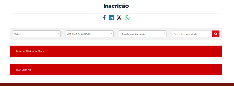1 - Acesse a página com as modalidades disponíveis e clique na opção SESI Esporte.