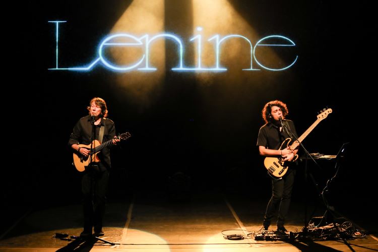 Lenine aproveita esse momento com o filho no palco, a quem ele credita como a pessoa que o tirou da inércia pós pandemia. A ambiência sonora do show se afina com a textura dos discos. Ambas são criadas com programações, violões de toque percussivo e vozes, produzidos, mixados e masterizados por Bruno Giorgi nos últimos anos.