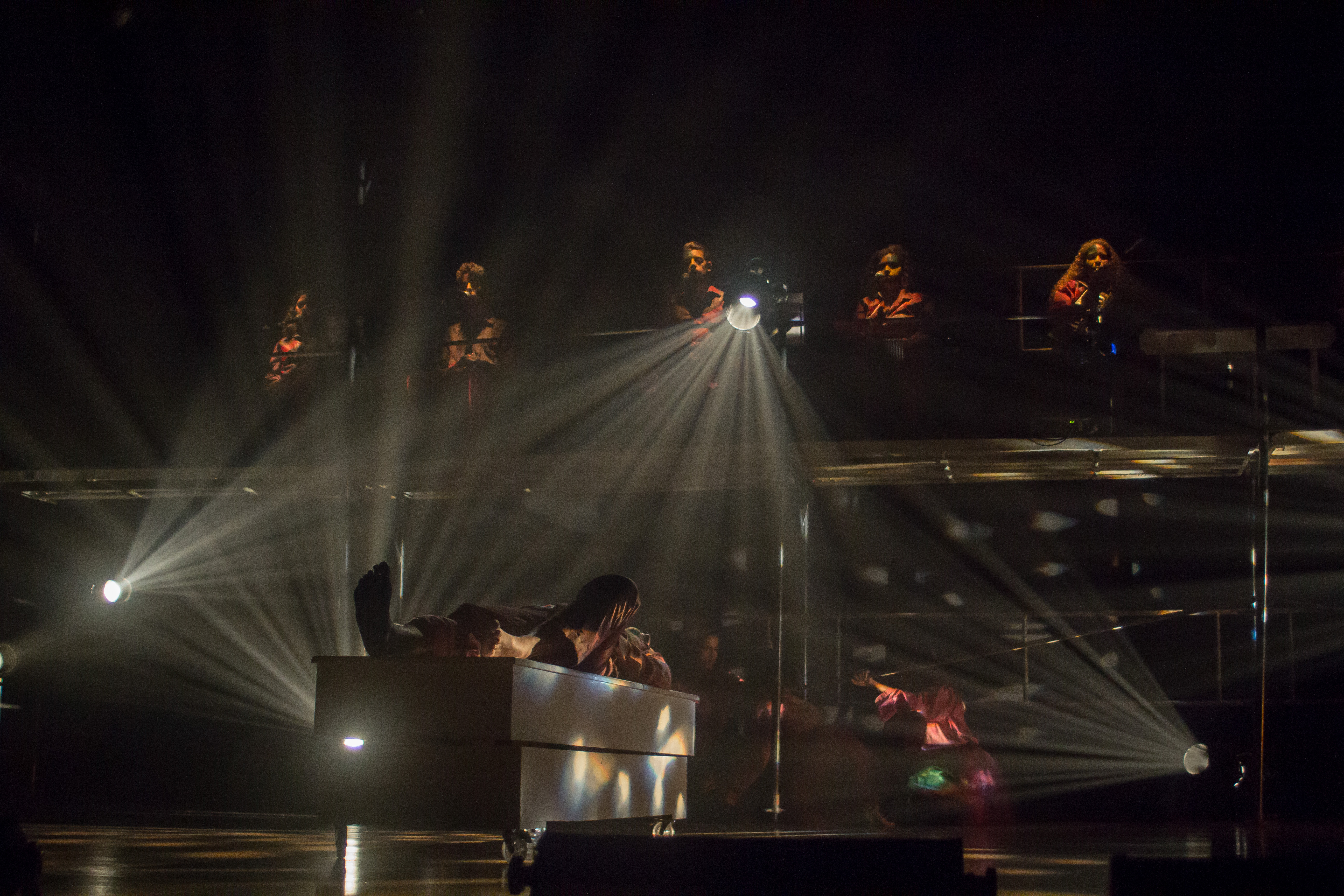 Direção: Roberval Rodolfo |Texto: Jorge Andrade | Elenco: Ana Clara Machado, Dina Mary, Fernando Justolin, Gabriela Santos, Jeffy, Lusiane Veloso, Lutty, Paulo André Mendes, Solaine Silva, Vito Rodriguez | Músicos: Ana Clara Soares, Jennifer Vieira, Karol Zordan, Victor D'Angelo , Vinicius Saraiva | Criação de Iluminação: Roberval Rodolfo e Feu de Andrade | Técnico de Luz: Feu de Andrade | Criação de Cenografia: Roberval Rodolfo e Cleber Medeiros | Mediadora Cultural: Juliana Gurgel